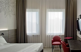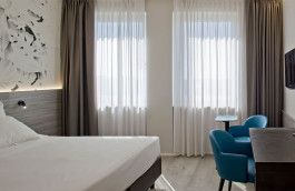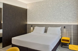 ENG - Hotel Friuli in Udine has completed an extensive interior renovation, involving all 100 rooms and their corridors, spread across five floors. The goal was to modernize the spaces and offer a distinctive guest experience. Each floor was characterized by a dominant color, creating a chromatic thread. In the corridors, striped carpeting complements the floor's color, acting as a visual guide and making the spaces bright and functional, with light-colored walls and custom-designed lighting integrated into the room numbering system. The rooms have been completely renovated, featuring a contemporary design. Laminate floors and light-colored walls provide a backdrop for color accents. Integrated LED lighting creates a modern and welcoming atmosphere. The furnishings, while maintaining a common theme, vary in detail and floor-specific colors. The warmer hues of the lower floors—fuchsia on the first and orange on the second—shift toward cooler tones as you ascend. On the third floor, yellow shifts to the lime green of the first floor, giving way to turquoise blue on the top level. Even the wallpapers adorning the headboards of the beds reflect the same color theme with stylized motifs. The overall project transformed the Hotel Friuli into a structure with a coherent, modern, and carefully considered design, enhancing aesthetics and functionality through the intelligent use of color.