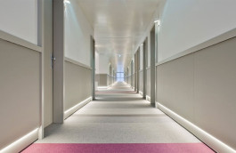 ITA - L'Hotel Friuli di Udine ha completato un esteso intervento di rifacimento interno, coinvolgendo tutte le 100 camere e i relativi corridoi, distribuiti su 5 piani. L'obiettivo era modernizzare gli spazi e offrire un'esperienza distintiva agli ospiti. Ogni piano è stato caratterizzato da un colore dominante, creando un filo conduttore cromatico. Nei corridoi, la moquette a strisce integra il colore del piano, fungendo da guida visiva e rendendo gli spazi luminosi e funzionali con pareti chiare e illuminazione studiata su misura, integrata al sistema di numerazione delle camere. Le camere sono state completamente rinnovate, presentando un design contemporaneo. Pavimenti in laminato e pareti chiare fanno da base per gli accenti cromatici. L'illuminazione a LED integrata crea un'atmosfera moderna e accogliente. Gli arredi, pur mantenendo una linea comune, variano nei dettagli e nei colori specifici del piano. Le tonalità più calde dei primi piani, il fucsia del primo e l’arancione del secondo, virano verso tonalità più fredde man mano che si sale: al terzo piano il giallo, vira al verde lime del quadro piano per lasciar spazio al blu turchese dell’ultimo livello. Anche le carte da parati che arricchiscono la testata dei letti riprendono il tema cromatico con motivi stilizzati. L'intervento complessivo ha trasformato l'Hotel Friuli in una struttura dal design coerente, moderno e attentamente studiato, che valorizza l'estetica e la funzionalità attraverso l'uso intelligente del colore.