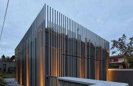 ITA - Il progetto nasce dall’esigenza di ampliare la funzionalità dell’abitazione esistente, con un nuovo garage capace di ospitare auto, bici e moto, accompagnato da un locale deposito attrezzi. Situata al centro del lotto e circondata su tre lati da un giardino, la casa firmata dall’architetto Simonitti si arricchisce ora di due volumi stereometrici posizionati sul lato nord, dove prima si trovava il vialetto carrabile. Il garage si attesta sulla strada, permettendo di ripristinare gran parte del vialetto carrabile preesistente. Il suo tetto si trasforma in una rigogliosa aiuola che abbraccia la terrazza, proponendosi come nuovo soggiorno a cielo aperto esposto a sud, capace di restituire permeabilità al lotto e vivibilità allo spazio esterno. La razionale geometria dei nuovi volumi è vivacizzata da un rivestimento in tubolari di alluminio a sezione quadrata, che crea un vibrante effetto di facciata, ispirata alla serie di Fibonacci. Questo rivestimento ha molteplici funzioni: uniforma e tridimensionalizza il cemento armato a vista, funge da parapetto, maschera i contenitori per la raccolta differenziata e cela il portone basculante e l'uscita delle biciclette. La vasca verde in copertura ospita arbusti che, crescendo, si fonderanno con gli steli metallici, evocando una foresta di bambù. Il deposito attrezzi, con aperture strette che richiamano le vetrate dell'abitazione, si armonizza con il garage nei toni scuri e terrosi. Il progetto include anche una pensilina per l'ingresso pedonale principale. Tutti i cancelli esistenti sono sostituiti con modelli su misura che riprendono il disegno del rivestimento del garage. L'illuminazione esterna è studiata per valorizzare la vasca verde, il rivestimento metallico, il nuovo giardino a nord e l'ingresso pedonale. La pavimentazione in pietra piasentina contribuisce all'eleganza dell’intervento. L'abitazione spicca sul basamento scuro dei nuovi volumi e del giardino, enfatizzando la gerarchia architettonica. Le tinte grigie calde dei volumi e del rivestimento conferiscono un'essenziale ricercatezza, infondendo armonia all'intero contesto.