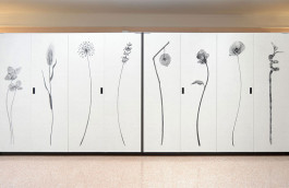 ITA - Il mobile buffet su misura per l'Hotel Astoria di Udine è una soluzione di design funzionale ed elegante, diviso in due blocchi simmetrici con fianchi curvilinei. Il suo punto forte è il meccanismo di apertura delle ante a "libro" rientranti, che permette di nascondere o esporre completamente il contenuto, ottimizzando lo spazio nella sala colazioni. L'interno è altamente organizzato con vani a giorno illuminati a LED e specchi per esporre cibi e bevande, e ripiani intermedi dotati di prese elettriche integrate, essenziali per le attrezzature. La parte inferiore offre vani a giorno e armadietti chiusi per lo stoccaggio discreto. I materiali scelti combinano un caldo legno scuro con finiture chiare che si armonizzano con le tonalità della sala colazioni. Il tocco distintivo sono le ante esterne rivestite con carta da parati raffigurante eleganti illustrazioni botaniche stilizzate, che conferiscono un carattere artistico e unico al mobile, trasformandolo in un armonioso elemento d'arredo. Realizzato da: Falegnameria Rizzi